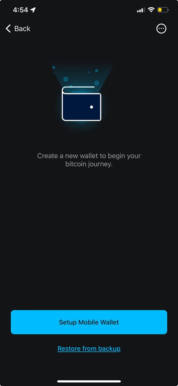 After clicking save, the app will return you to the home screen. Tap the Wallet icon in the top-right corner again. This time, you will want to tap Set up a New Wallet at the bottom of the screen.