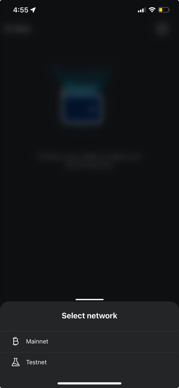 Choose Testnet as the network on the next small pop-up menu. After that, the app will create your testnet wallet and open it for you back on the home screen.