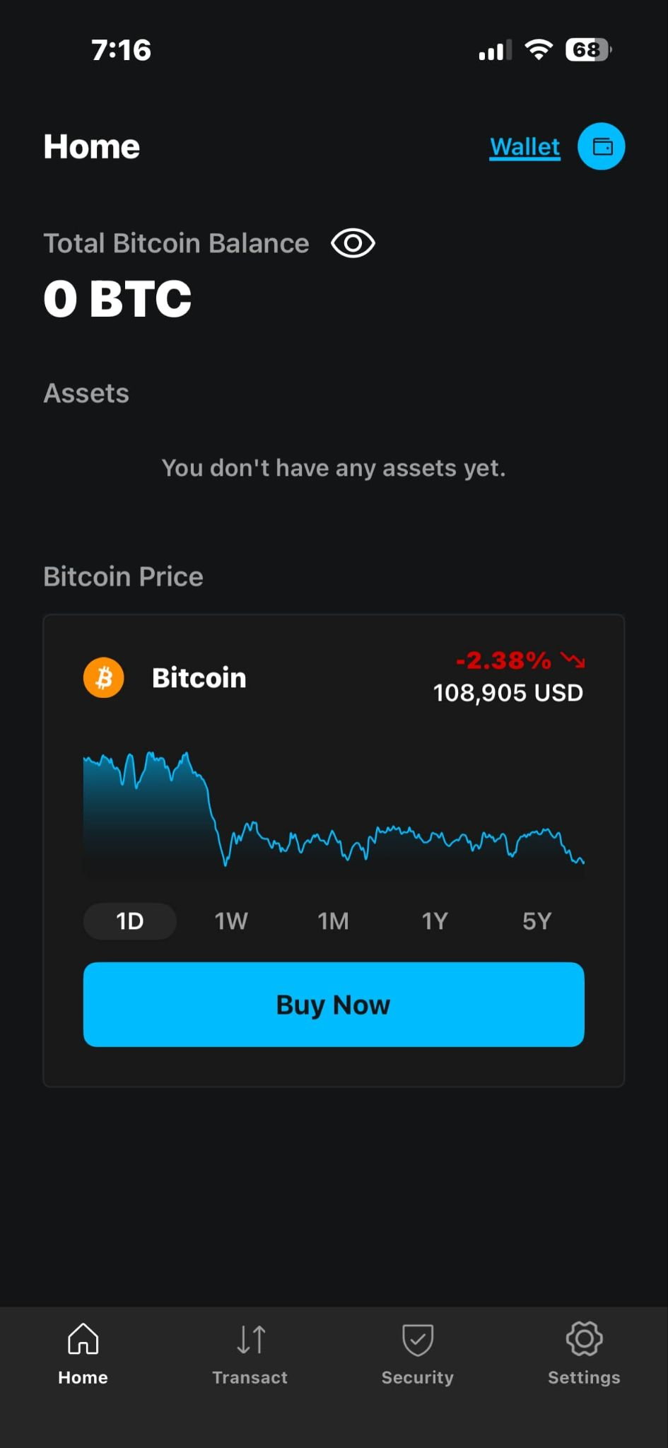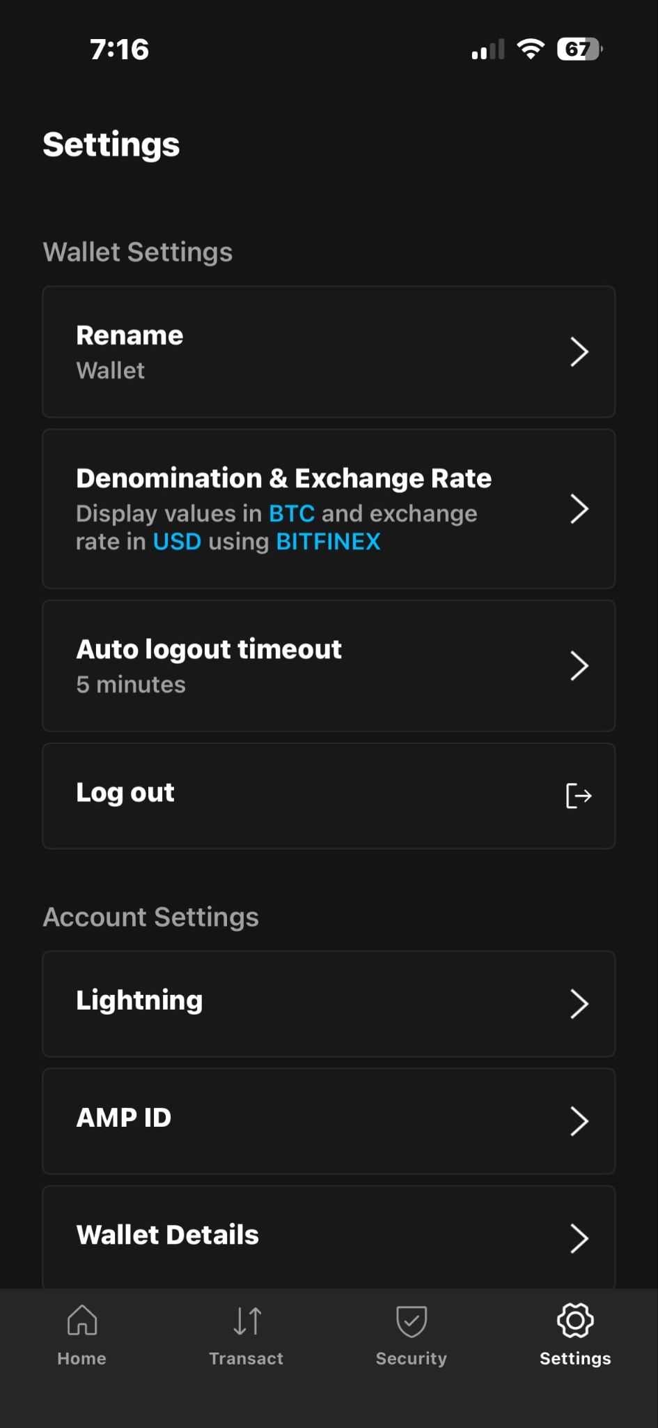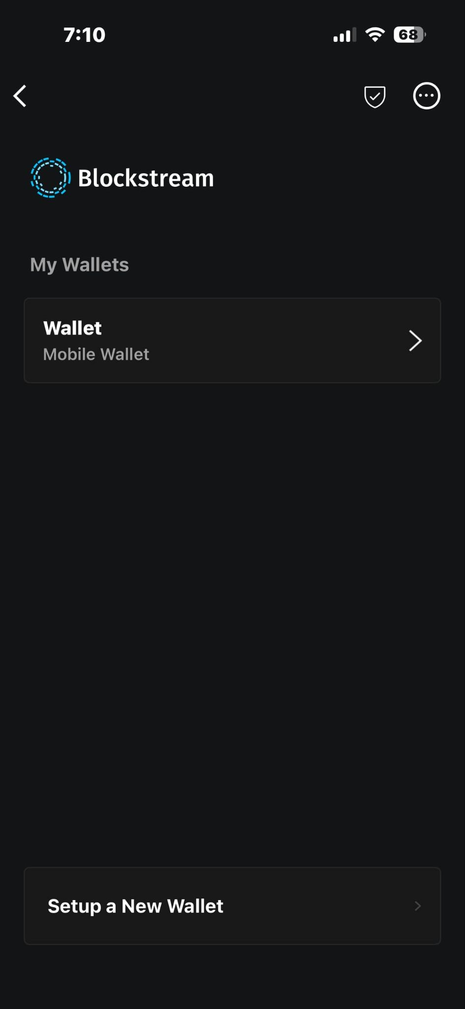 Open the Blockstream app. From the home page, tap the Wallet icon in the top right.