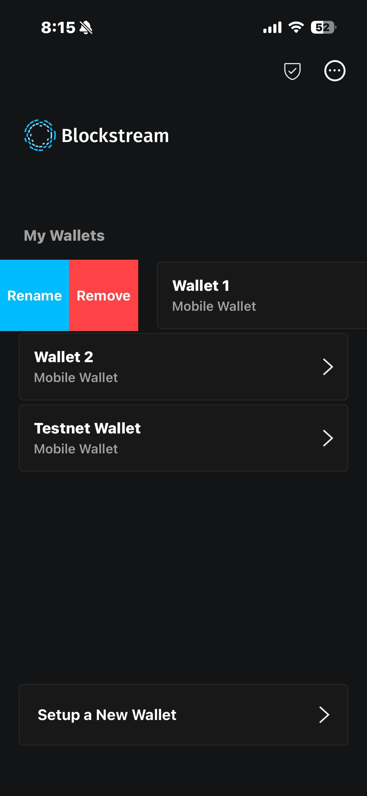 From the My Wallets screen, swipe right on the wallet you would like to rename. Tap Rename.